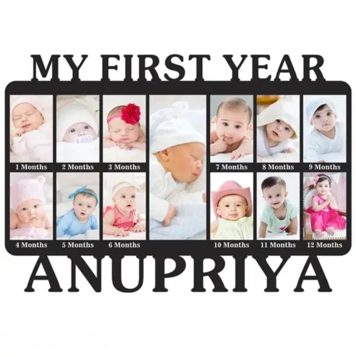 1st Year Happy Birthday Customized Collage Photo Frame | Personalized With 13 Images And Texts | Best Gift For Kids, Sister, Brother, Friends, Daughter Son