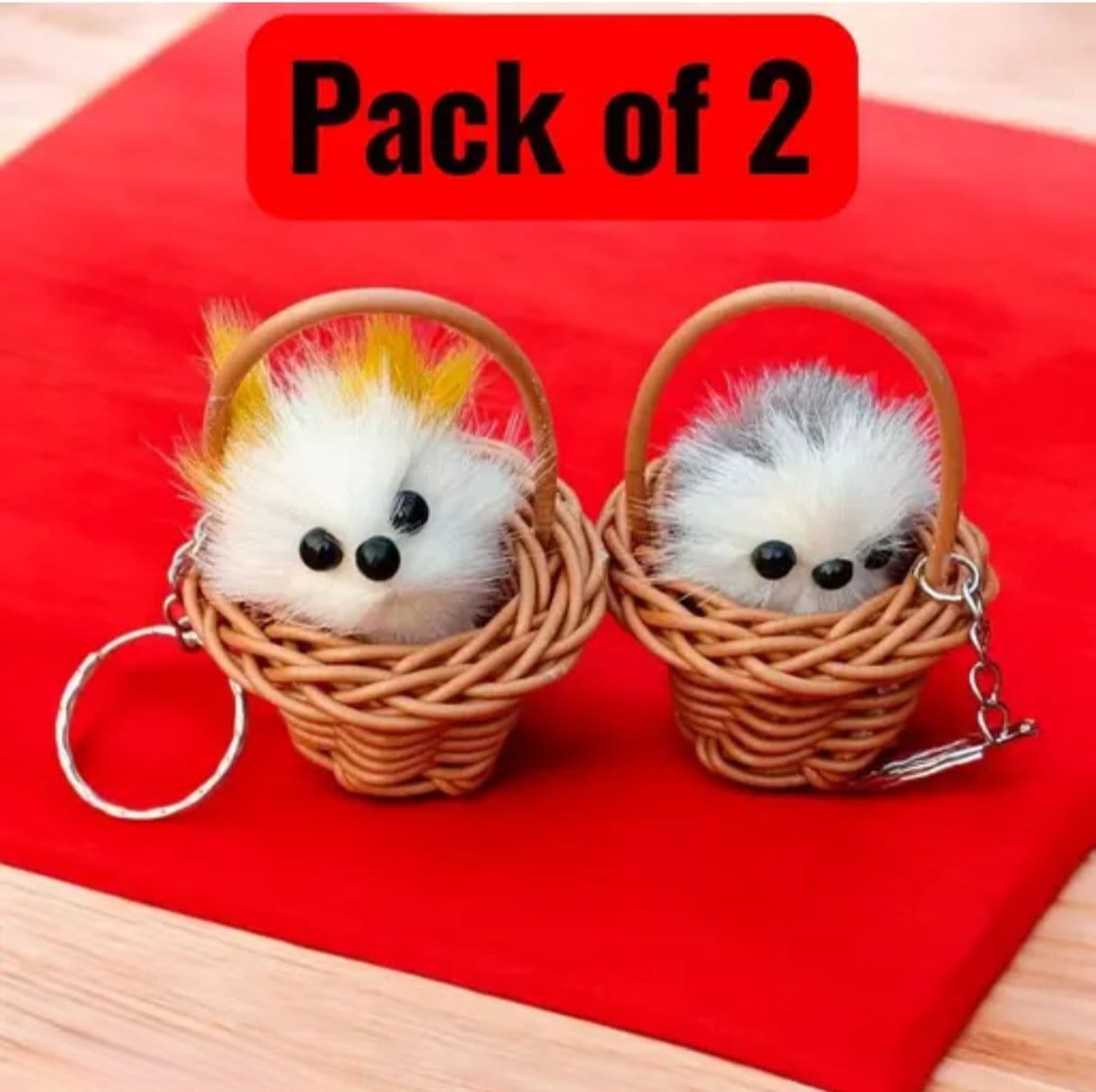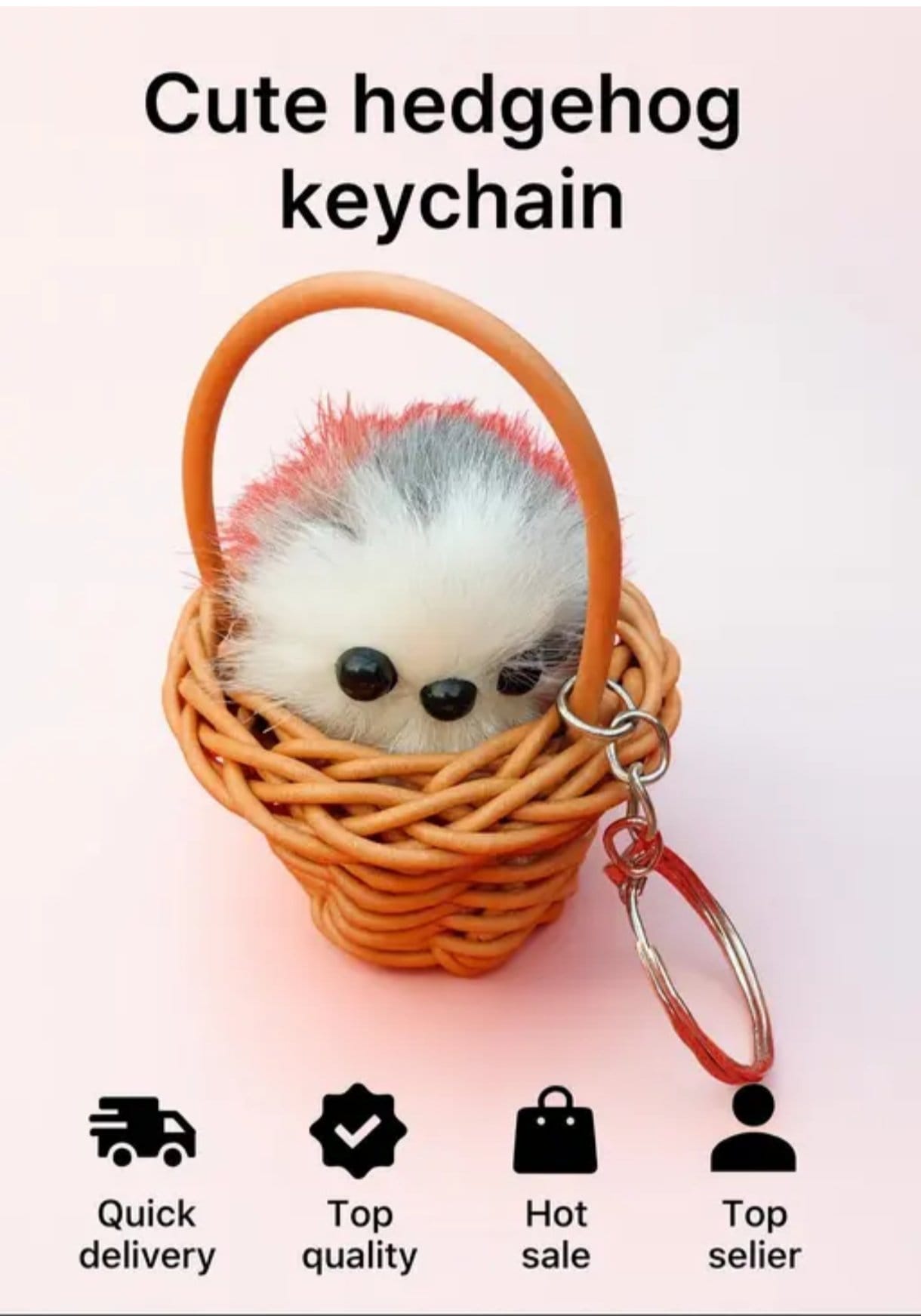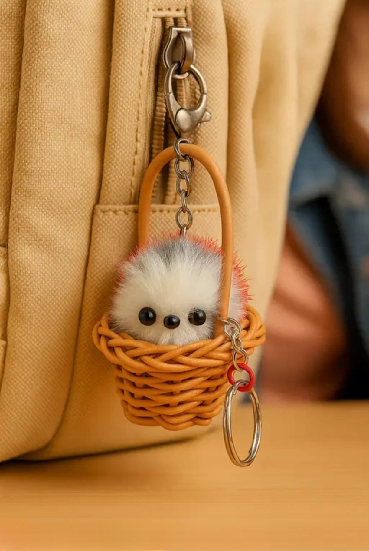 Cute Fluffy Hedgehog Basket Keychain for Girls & Kids | Soft Plush Key Ring | Trendy Bag Hanging Accessory