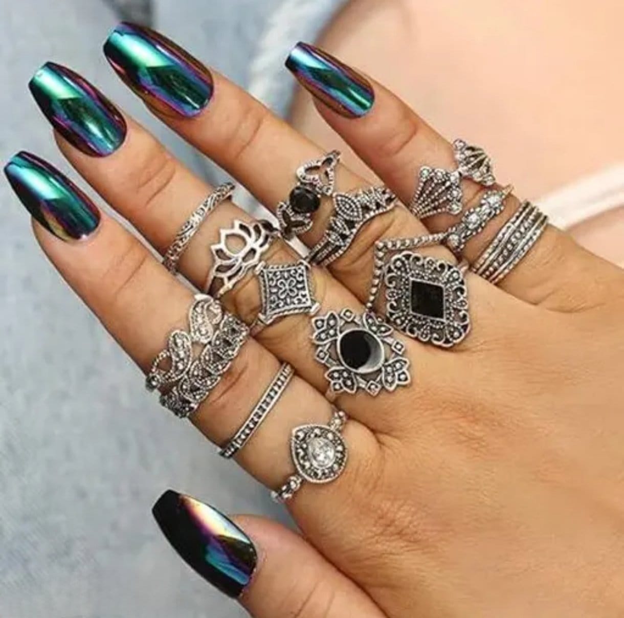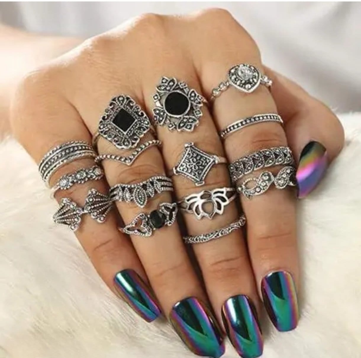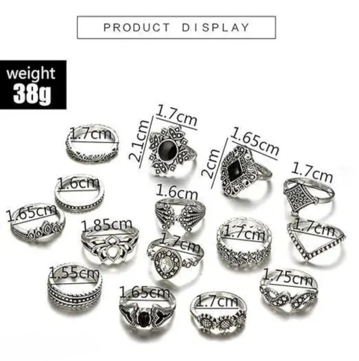Silver Plated 15 Piece Multi Designs Ring Set For Women and Girls