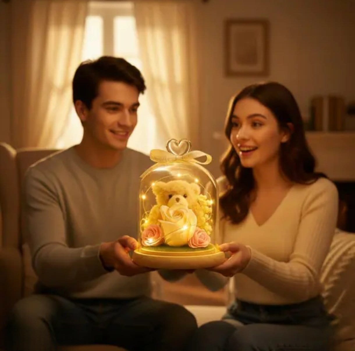 Ellegant Glass Dome Love Showpiece with Glowing Lights & Couple Figurine – Anniversary Decoration Gift” Valentines gifts