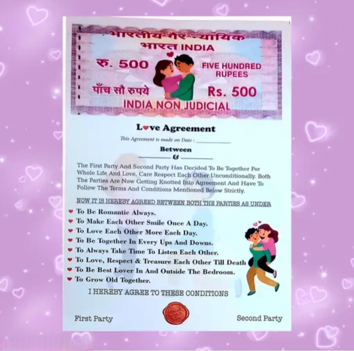 Love Contract Agreement Paper Love Agreement Greeting Card For Love Valentine Gift Card Agreement Contract Card