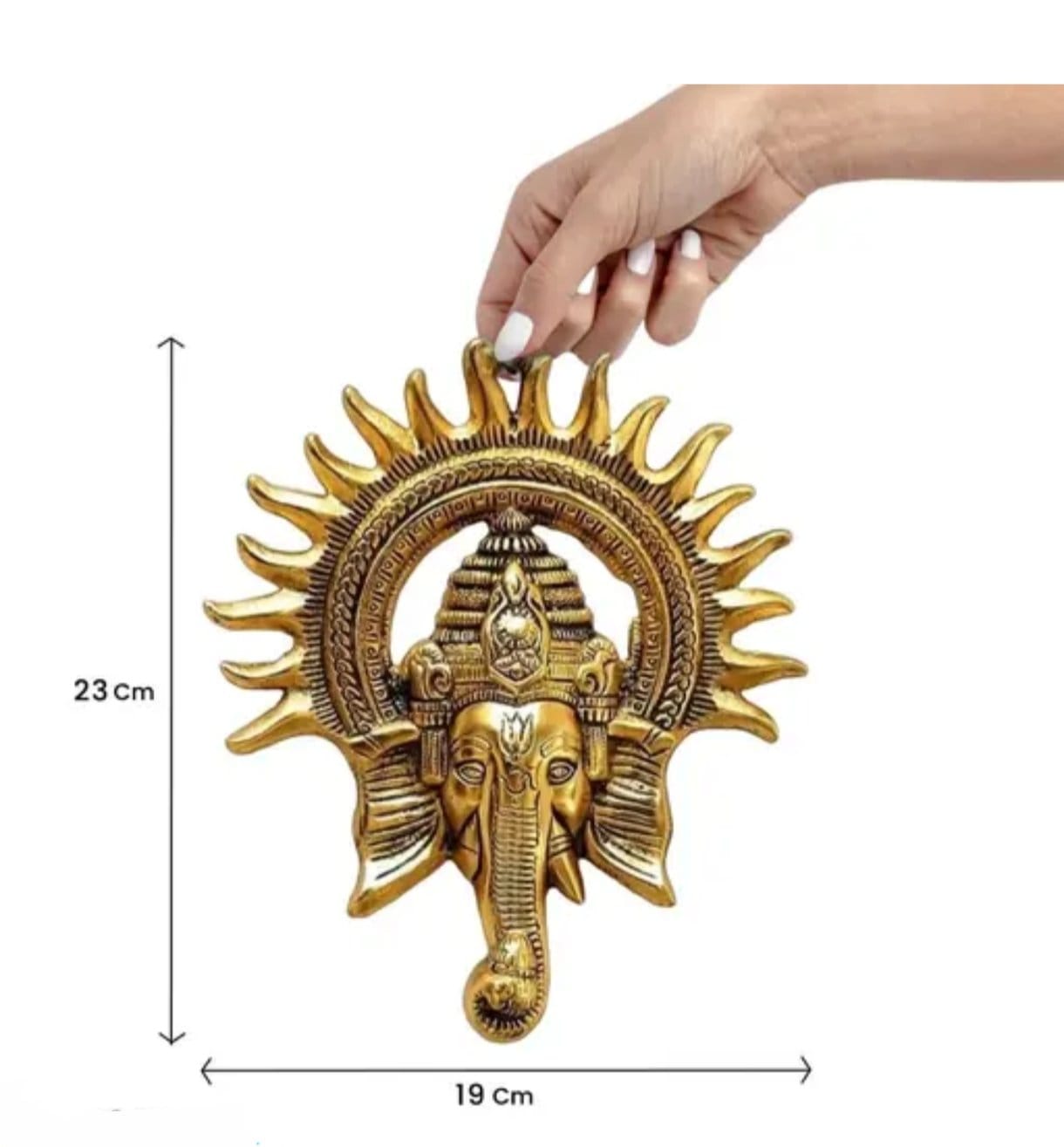 Golden Lord Ganesha With Sun Decorative Metal Wall Hanging Art Decorative Showpiece For Wall Decor, Festival Home Decor Pooja Room Temple & Gift For Family