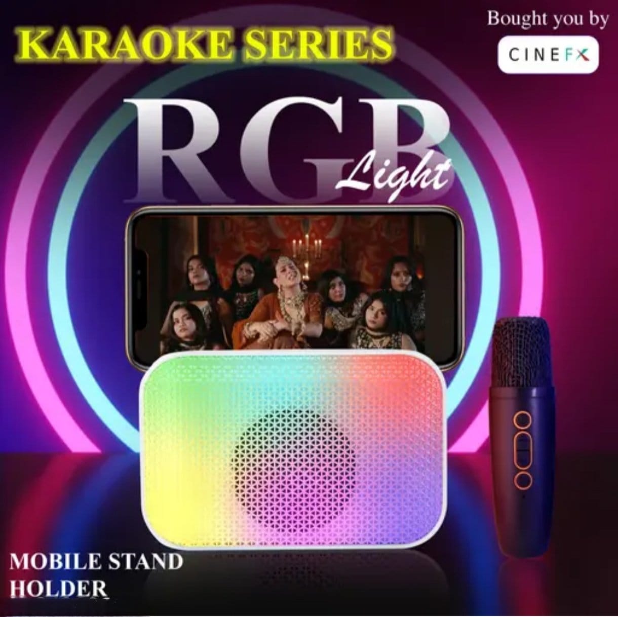 Mini Bluetooth Speaker, Wireless Karaoke Mic, 4Hrs Playtime, Dim Night RGB Lights, 5 Voice Effects, Multi-Play Modes BT4.1/TF Card & Type-C Charging